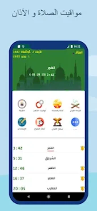 Denna app är ett verktyg som ger exakta bönetider. Den innehåller information om de olika bönetiderna i Algeriet. Den inkluderar också platsen för de olika moskéerna i landet. Denna app inkluderar också böneutropet.
